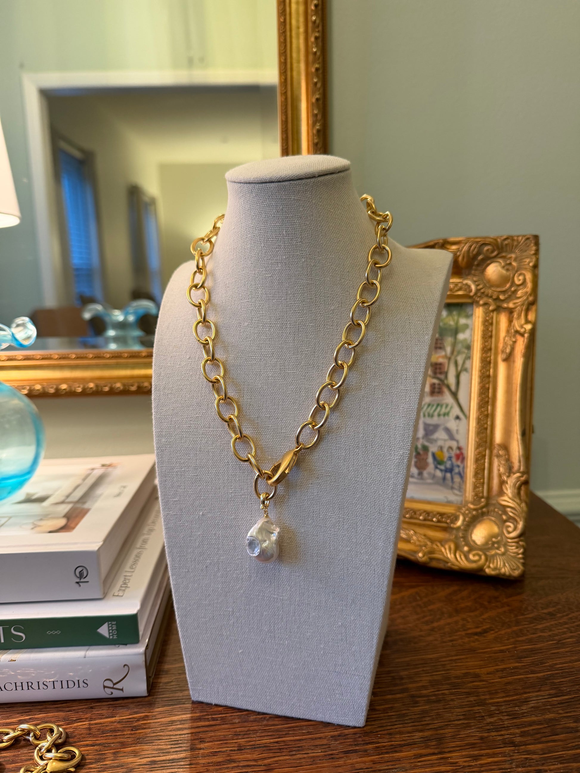 Single pearl on chunky gold oval chain