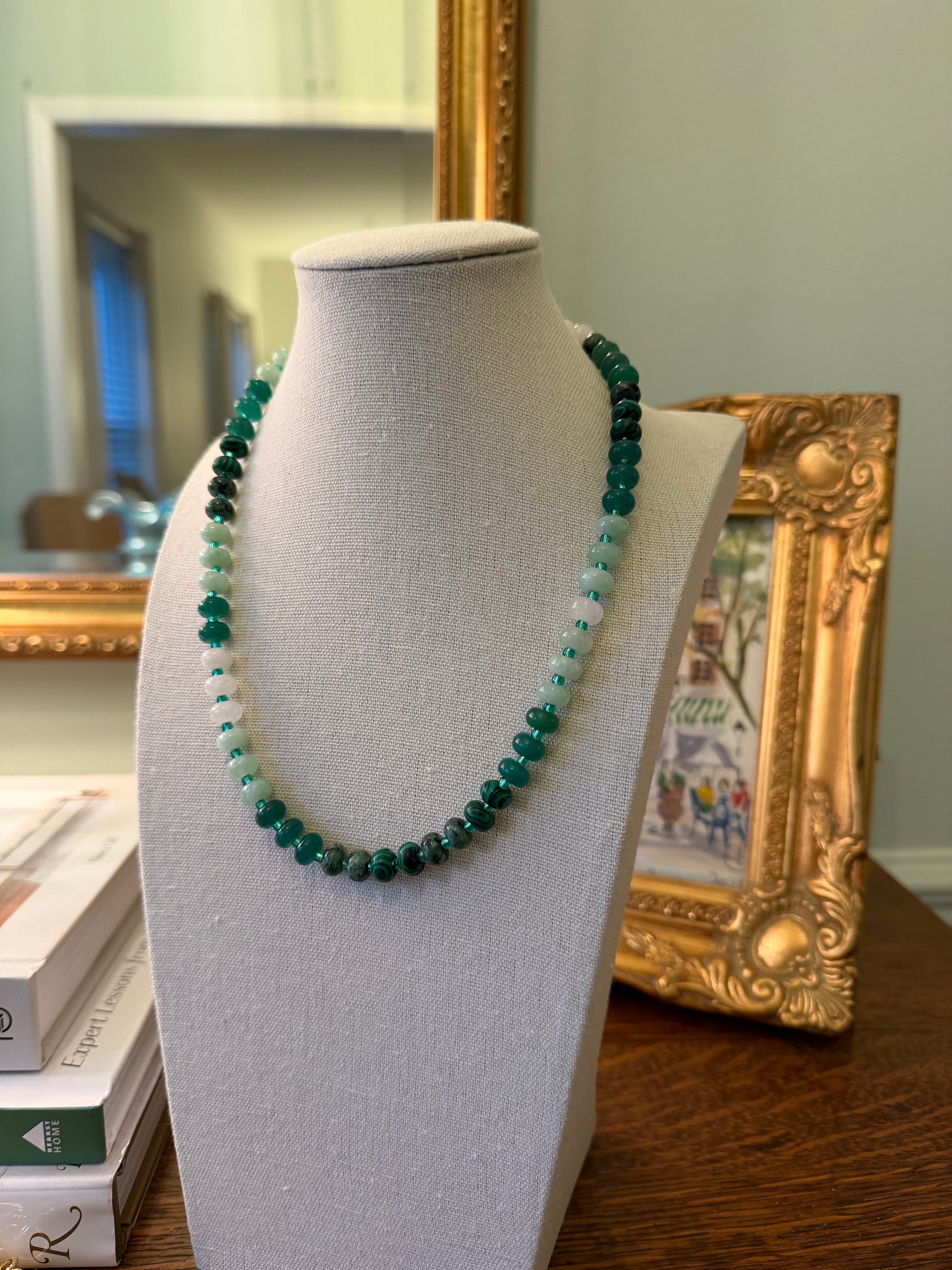 Multi green beaded necklace