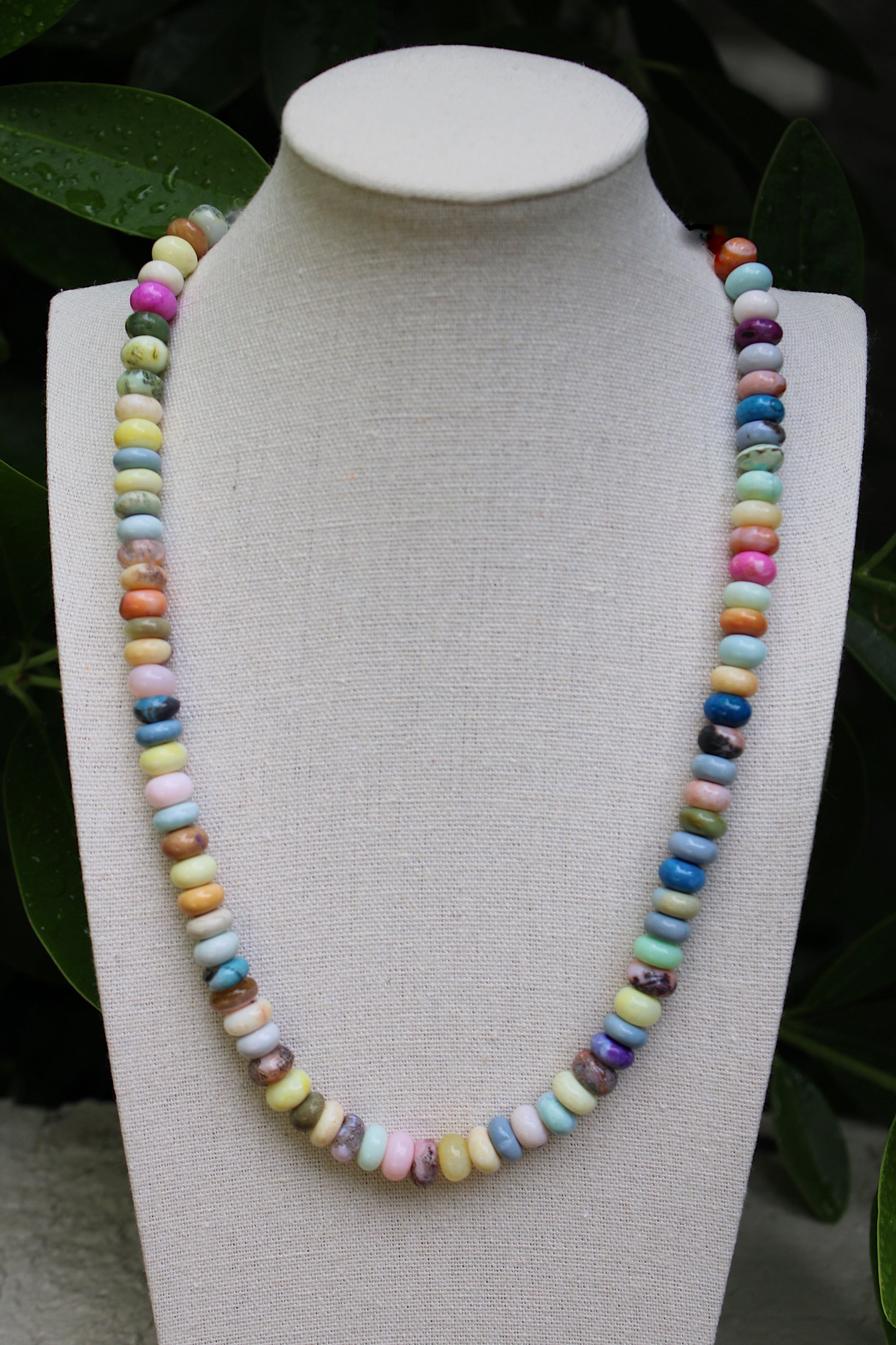 Opal precious gem beaded necklace 16-18” with 18k gold filled paperclip extender and clasp.