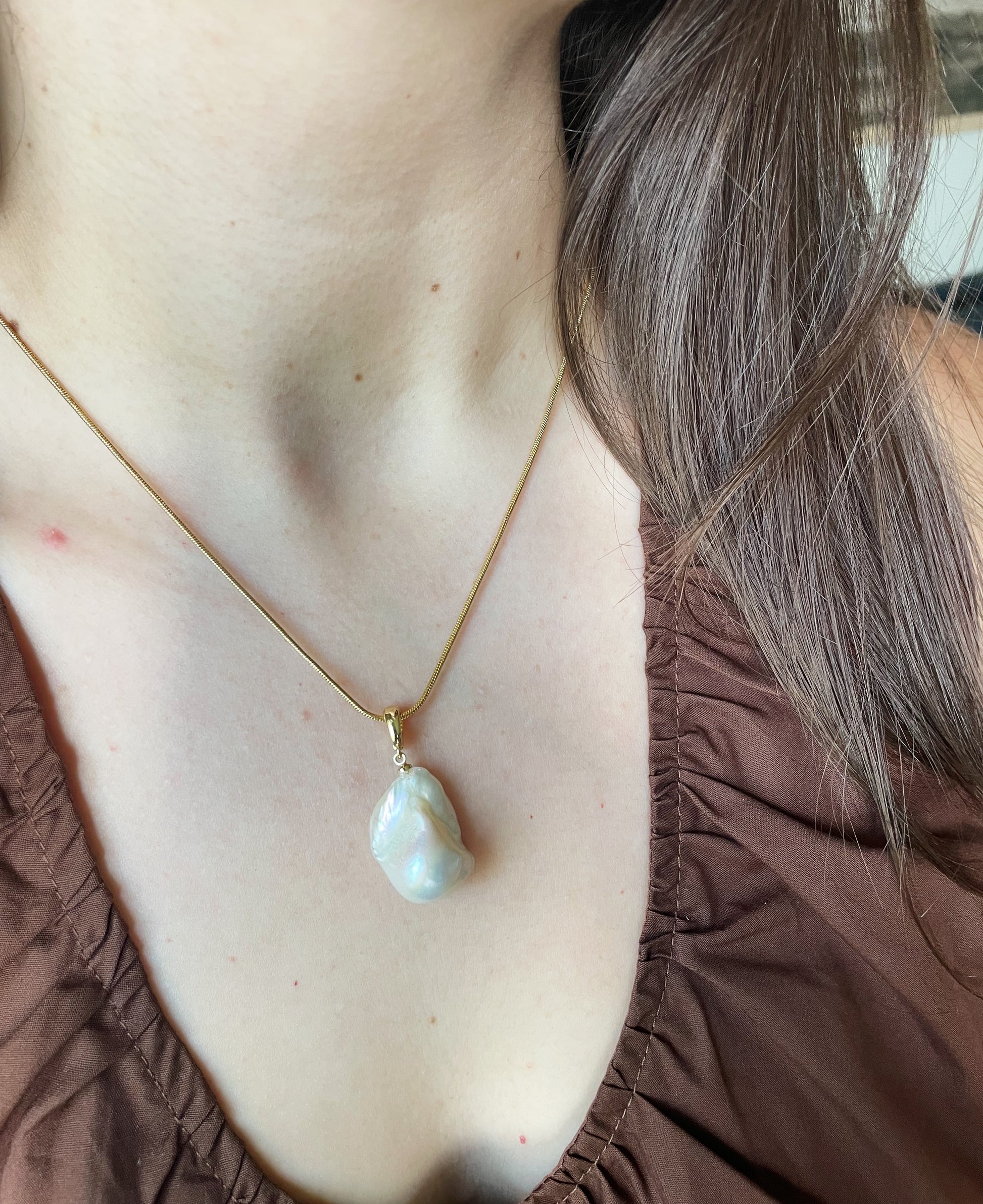 Beautiful Freshwater pearl on 18k gold filled snake chain.