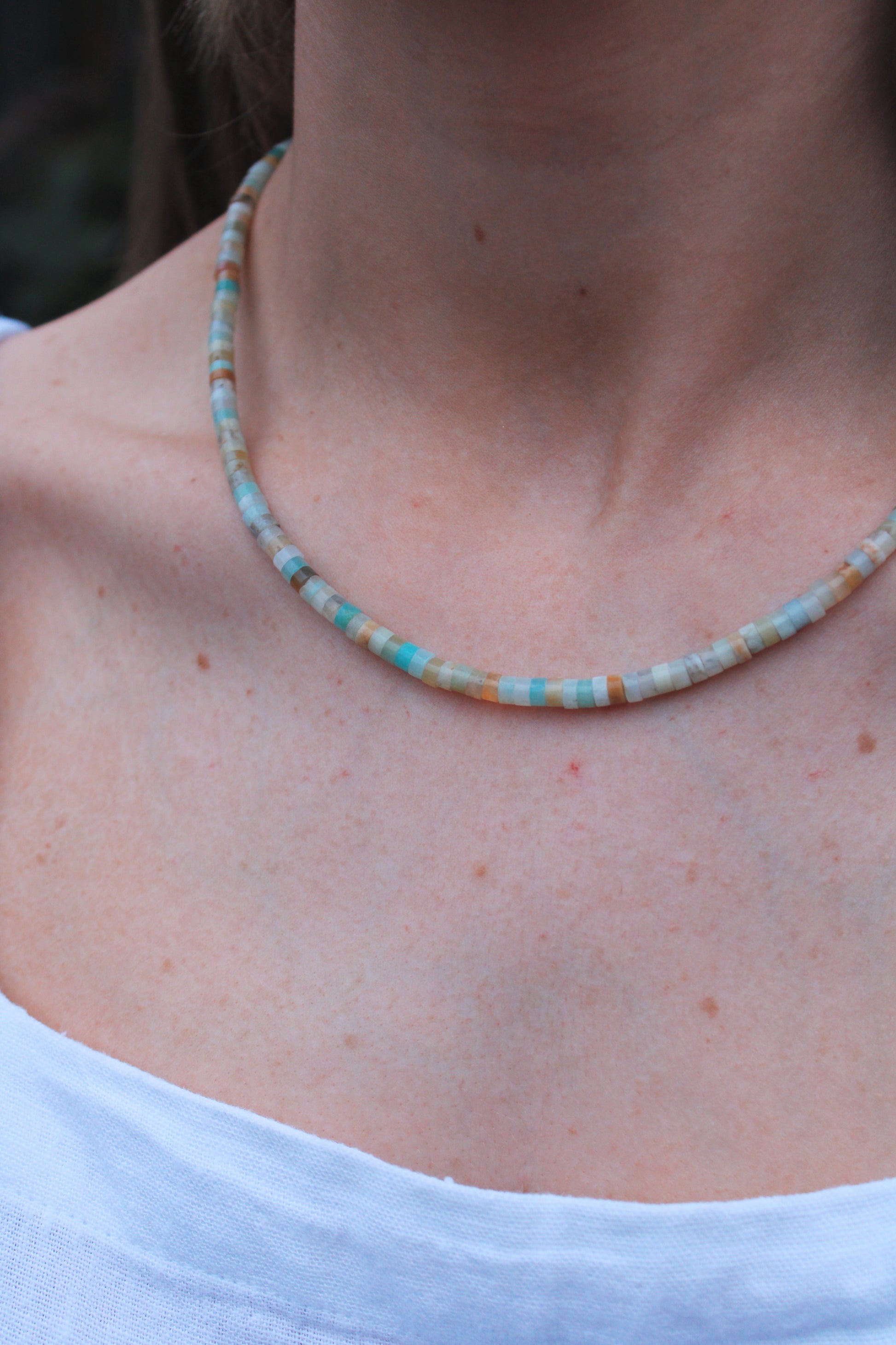 Natural Amazonite stone 2mm 16" necklace with 2" 18k gold filled extender chain and clasp